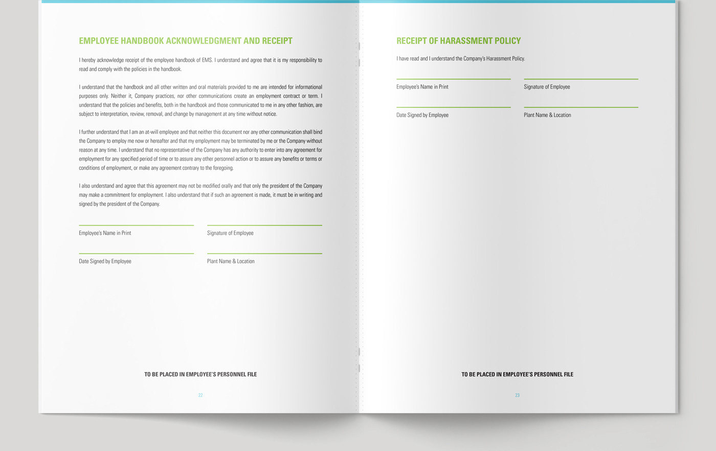 Example No. 01: 24 page handbook design for Energy Management Solutions. The client favors a corporate look but I added visual interest with photography and pops of color.