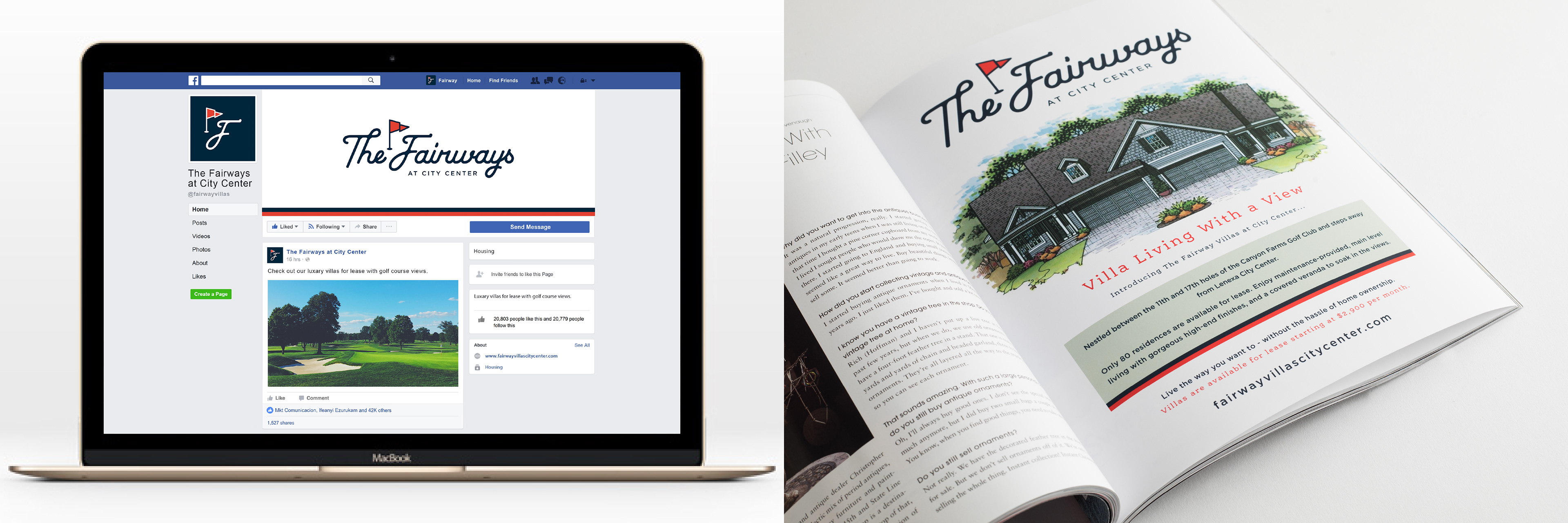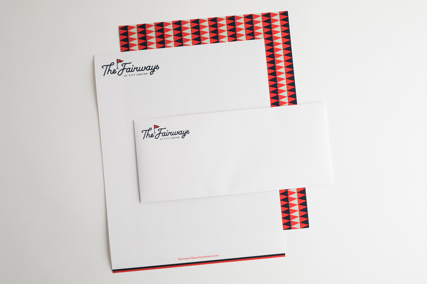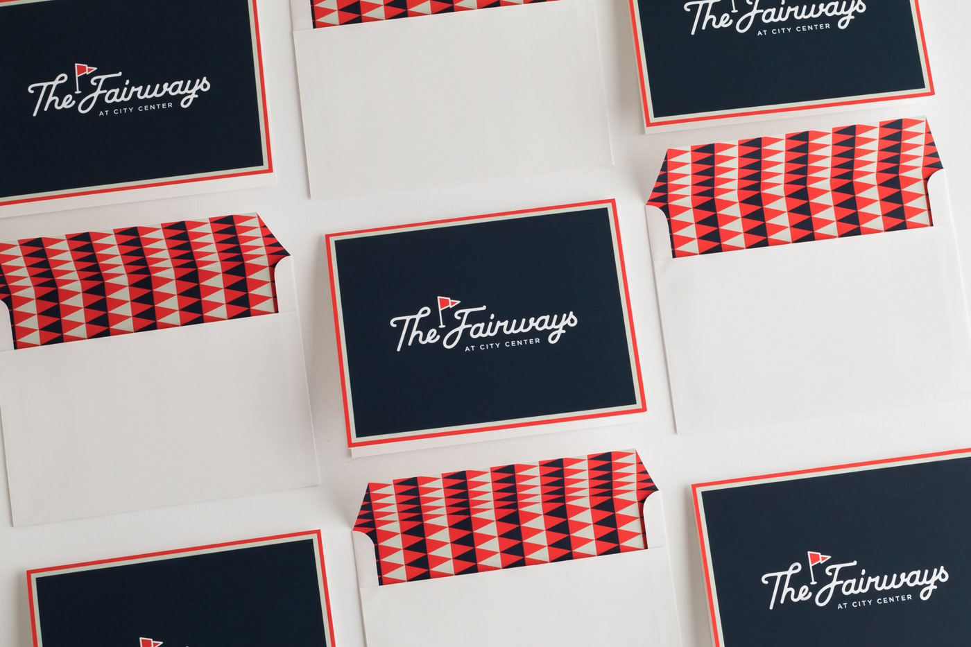 The Fairways at City Center are luxury villas for lease with golf course views. I worked with a team to provide them printed collateral with a preppy vibe.
